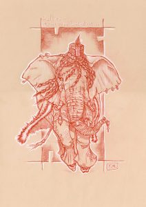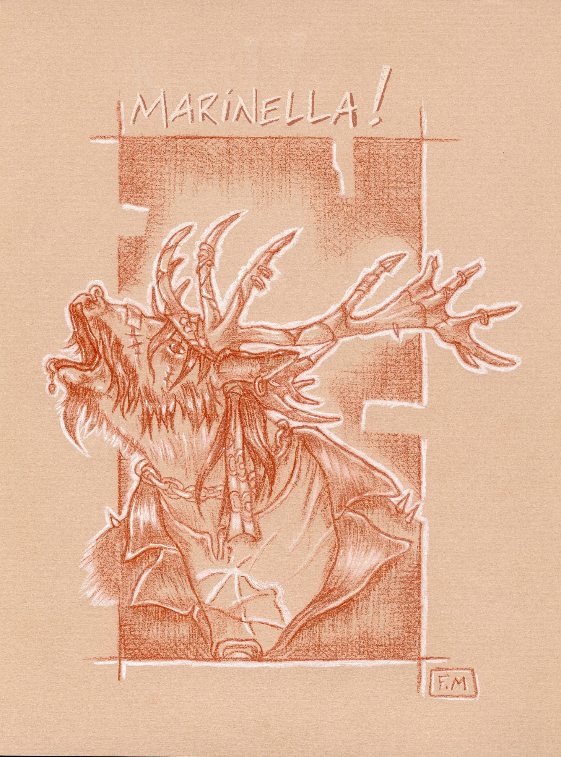 « Brame Punk » – Sanguine sur papier kraft – 40 cm X 30 cm