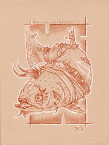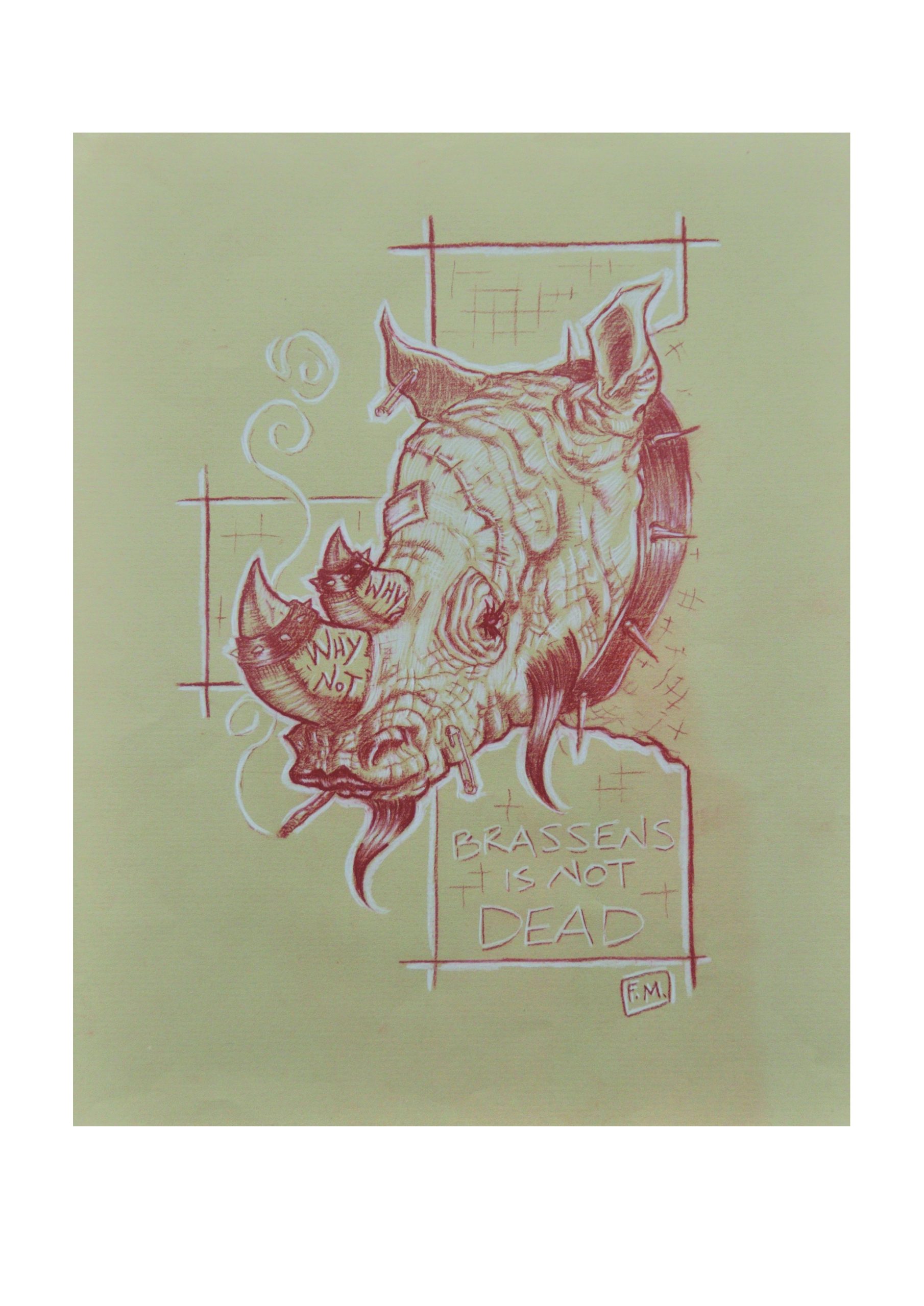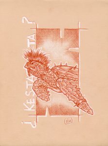 « Kesta ta !!! » – Sanguine sur papier kraft – 40 cm X 30 cm