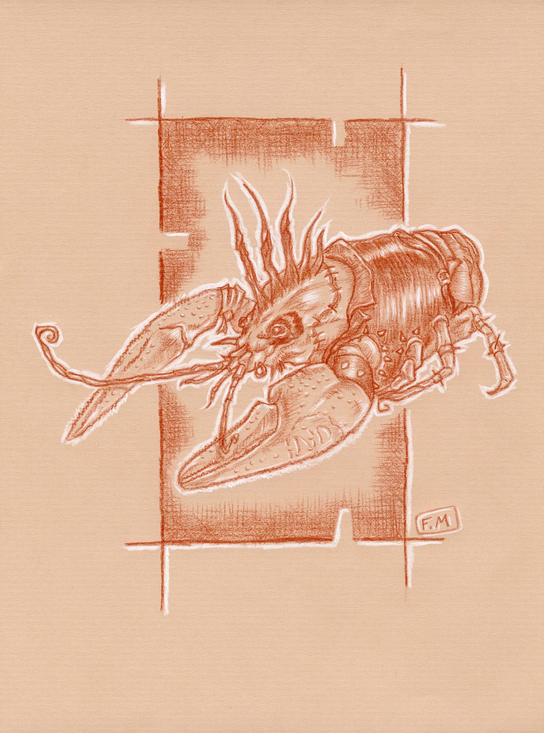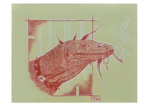 « Komodo » – Sanguine sur papier kraft – 50 cm X 40 cm