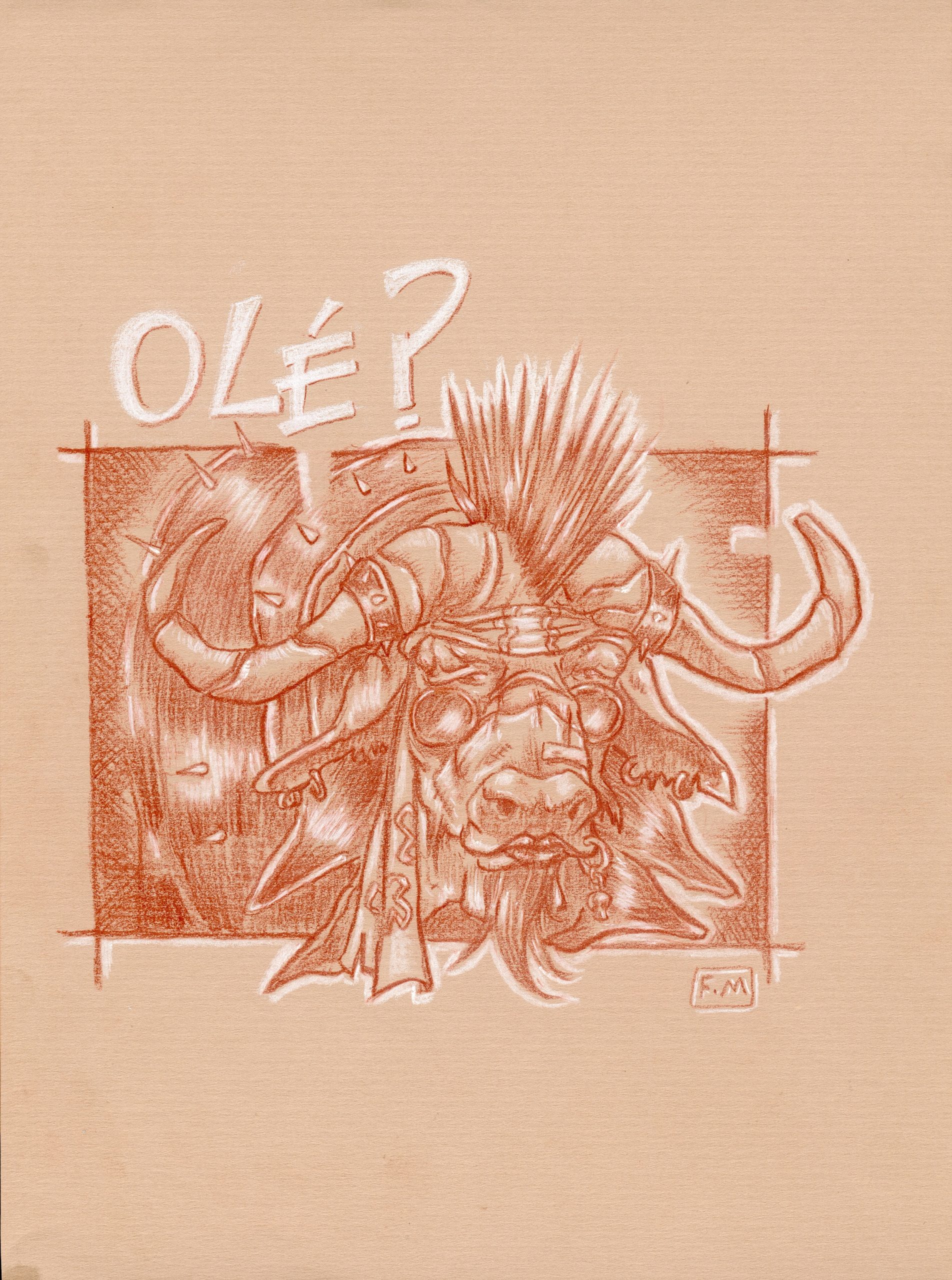 « Olé ! » – Sanguine sur papier kraft – 40 cm X 30 cm