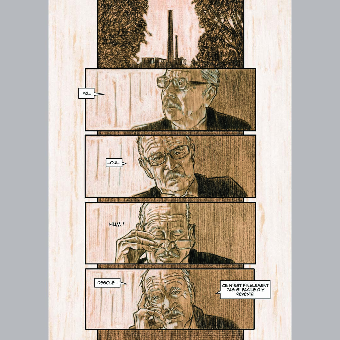 C’est aussi sa « porte d’entrĂ©e » dans ce passĂ© qui rĂ©sonne avec « la grande histoire du XXe siècle ». « Au grĂ© des rencontres, j’ai rĂ©coltĂ© des tĂ©moignages vivants et Ă©mus, relève Franck Marro. J’ai eu accès Ă des archives secrètes et reçu l’aide de l’association des Amis du Vieux Bergerac et de la Dordogne. » Pendant des mois, l’illustrateur, qui a dĂ©jĂ publiĂ© des bandes dessinĂ©es dans des journaux dans les annĂ©es 1990 et 2000, s’est nourri d’images, de documents et de paroles comme celle d’Anselme Guttierez, ancien responsable CGT Ă la poudrerie. ImaginĂ©e « Ă hauteur d’ouvrier » avec « ce que ça comporte de subjectivitĂ© », cette première chronique retrace Ă travers un personnage fictif le combat des poudriers qui rĂ©ussirent, le 5 mars 1992 lors d’une opĂ©ration Ville morte, Ă mobiliser des milliers de personnes dans les rues de Bergerac pour les soutenir. Franck Marro revient Ă©galement sur ces jours et ces nuits oĂą Bernard Brouqueyre, alors directeur de la SNPE, fut retenu dans son bureau par les ouvriers.