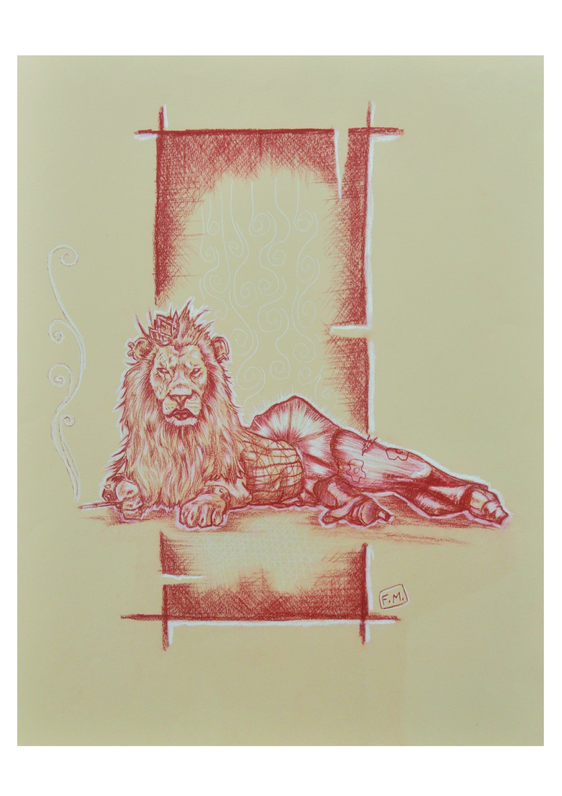 « Queen Lion » – Sanguine sur papier kraft – 70 cm X 50 cm