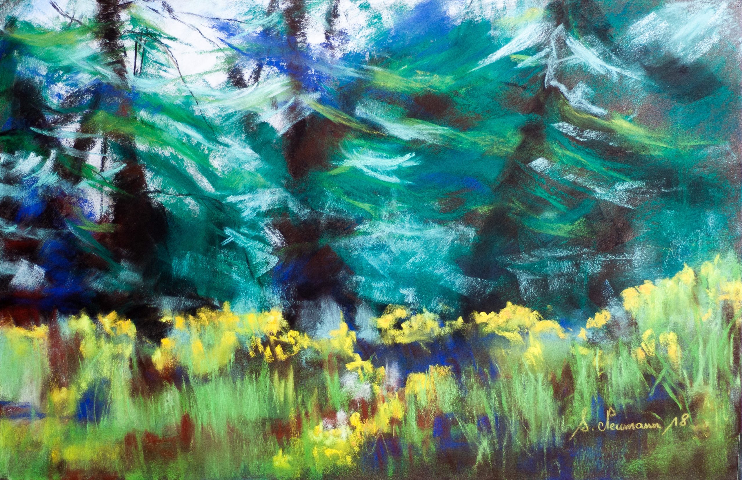 Le sous-bois Pastel 73×53 cm