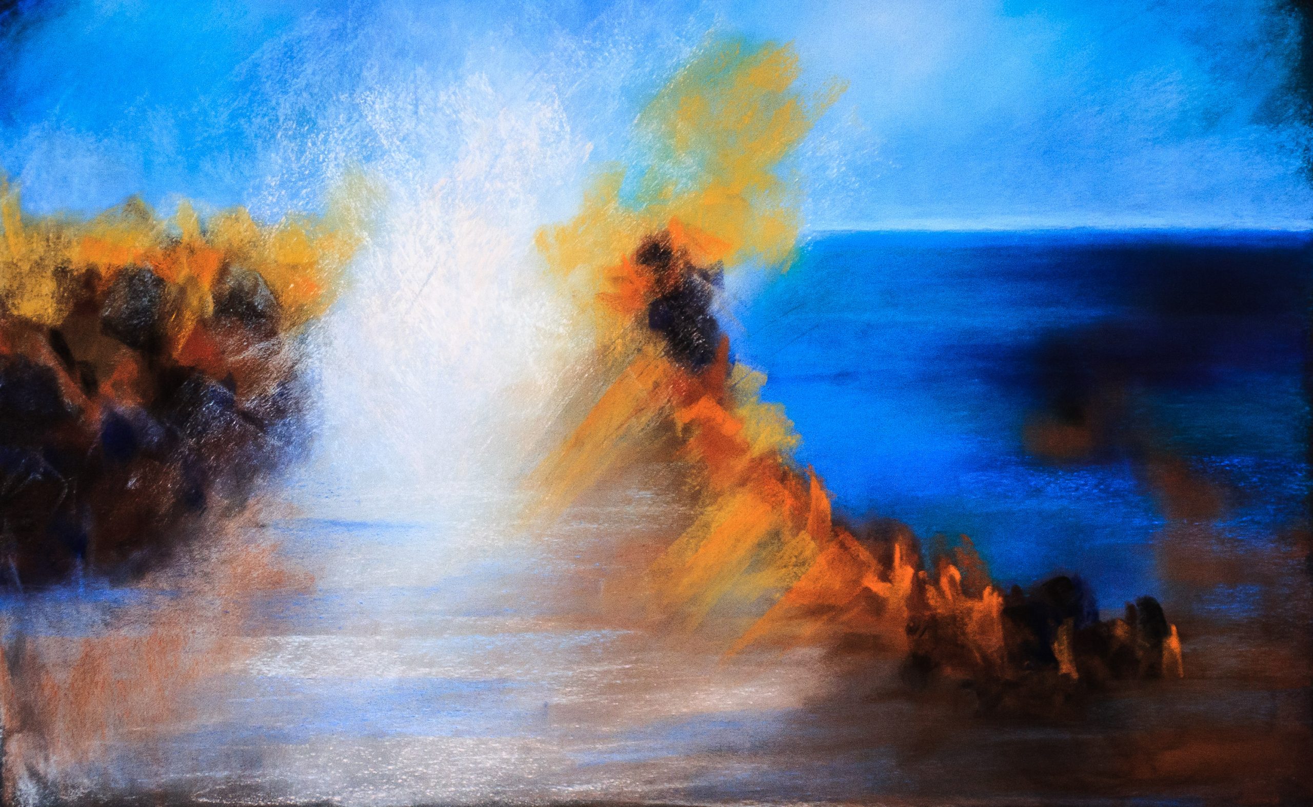 L’écume des vagues Pastel 50×32 cm