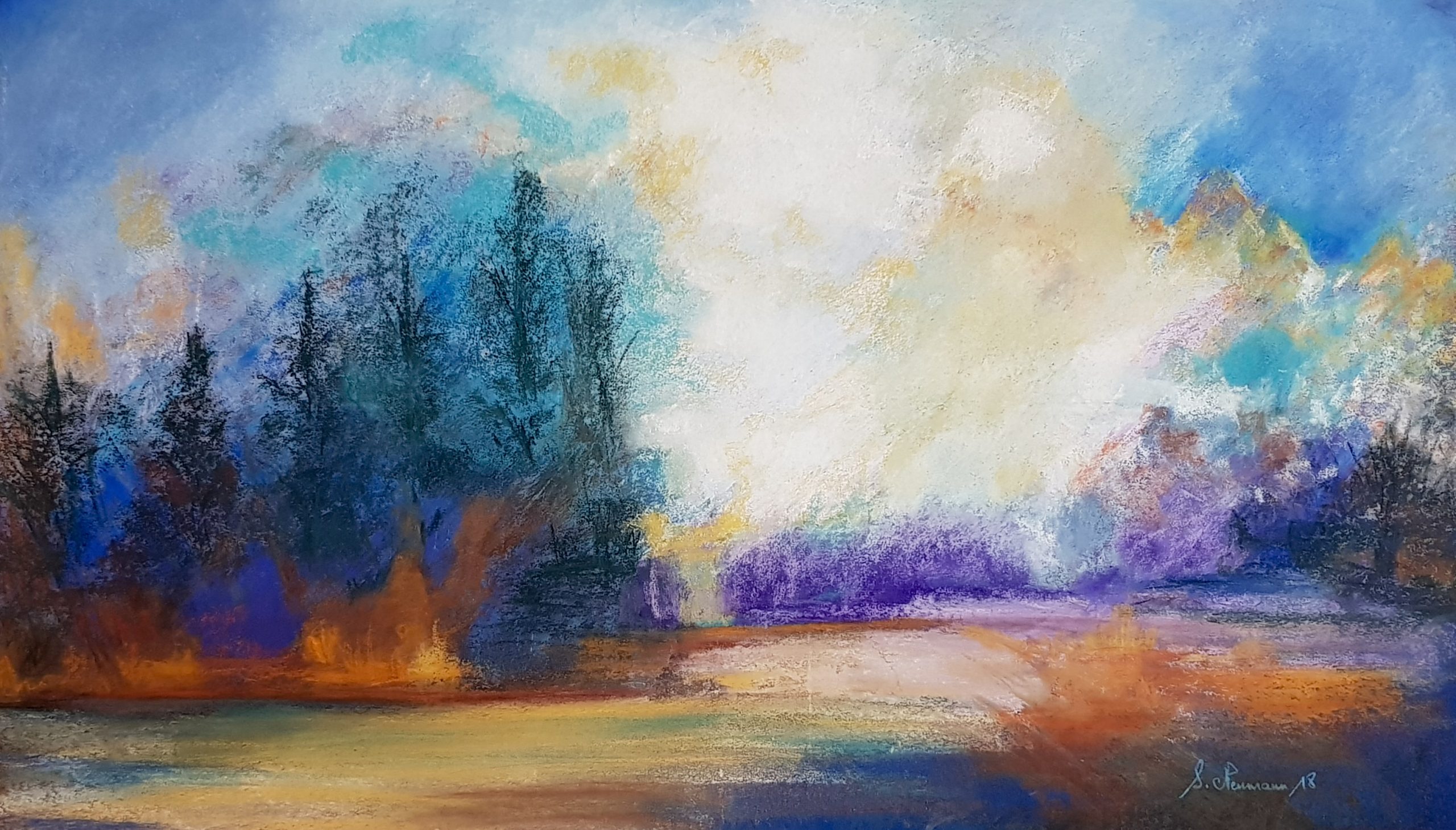 Paysage imaginaire Pastel 60×35 cm