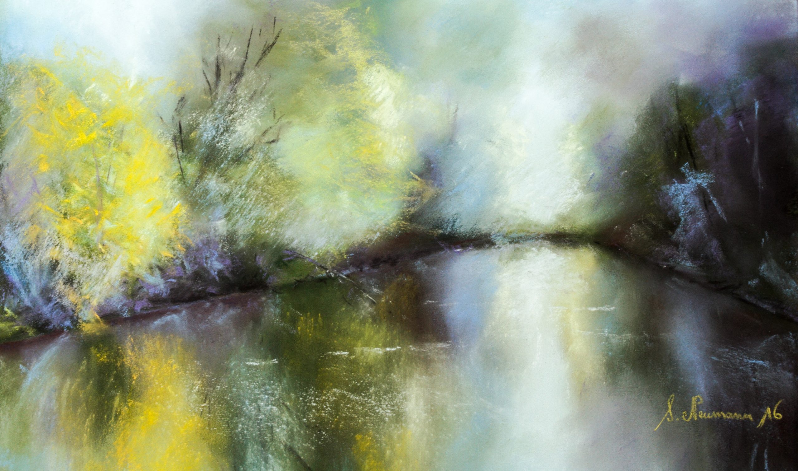 Rivière au Printemps Pastel 42×25 cm